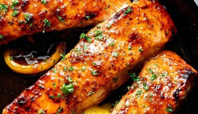 When I come home from a long day and want to make something quick, yet healthy, fresh and tasty – I make honey garlic salmon! With ingredients that can be found in our fridge and cupboards, and a short cooking time, dinner will be ready in minutes! High in protein, healthy omega fats, and a good source of vitamin D!