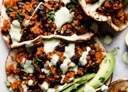 Tacos are a fun and tasty choice for get-togethers but did you know that they can be super healthy too? We’ve added lots of colourful veggies like orange bell pepper, tomato, and red onion to ours to make this meal balanced. Our recipe uses quinoa too, which is a complete protein (the same way beef, poultry, and fish are) but plant-based, making it more environmentally friendly and a good choice for our Meatless Monday 🙂 Take a chance and make these tacos today, you won’t regret it!